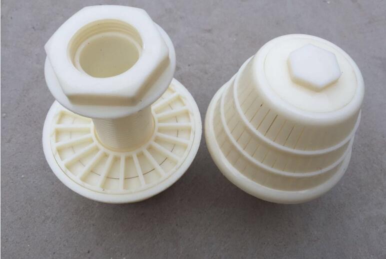 滤头材料采用ABS工程塑料制造,承压强度高, 踩碰不碎,在滤头结构中强化螺纹,增设橡胶垫圈,连接劳固,永不脱落。滤头帽底座设计增强底缝,使与滤板间无死水区,不积泥等优点。广泛用于水处理过滤器、过滤池、软化水的组合式、回程式、离子交换柱设备。各种规格的滤帽适用于各种相配的离子交换柱,活性炭过滤器使用,也可用于快滤池的排水系统。