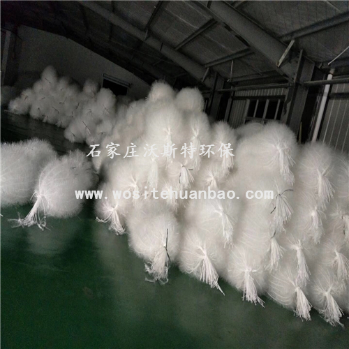弹性填料的作用事实上就是给微生物提供一个生长平台,微生物附着再填料上可增加污水与微生物的接触面积提高水解酸化池的处理效率。简单的说填料就是细菌的附着床,就是增加生物量和提高微生物与废水接触面。弹性立体填料与硬性类蜂窝斜管填料相比,孔隙可变性大,不堵塞;与软性类填料相比,材质寿命长,不粘连结团;与半软性填料相比,表面积大、挂膜迅速、造价低廉。因此,该填料可确认是继各种硬性类填料、软性类填料和半软性填料后的第四代高效节能新颖填料。