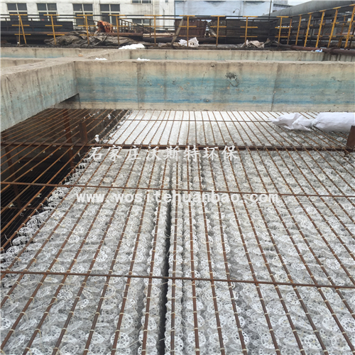 组合填料是生物膜法水处理工艺的技术核心,是生物池中微生物量、微生物种类、微生物活性以及微生物新陈代谢过程所需物质的传递介质,填料关系着微生物栖息、生长和繁殖。因此,
