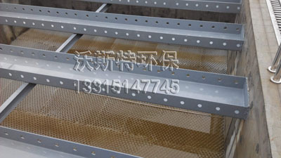 根据斜管沉淀池填料支架安装施工图,先将填料支架安装到位,检所有焊接结点牢靠、支架强度足以承受填料重1t,并在支架表面完成防南处理;