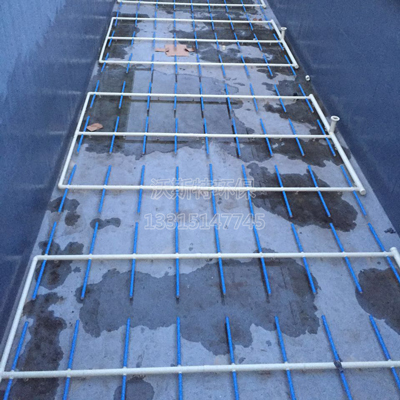 曝气器系统的的设计和工作状况决定了活性污泥法的能耗和处理效果,曝气器需要选择与曝气池结构相配合的,没有充足的溶解氧,好氧微生物不能生产也不能发挥作用。常用65的曝气管以一米长为单位,一平米布置一根。为了方便管理,管式曝气器可制作成可提升式,需要维护时,随时可以将微孔扩散器提出水面进行清理。