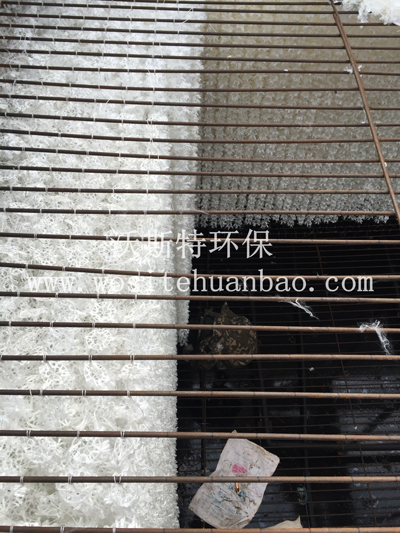 组合填料它其结构是将塑料圆片压扣改成双圈大塑料环,将醛化纤维或涤纶丝压在环的环圈上,使纤维束均匀分布;内圈是雪花状塑料枝条,既能挂膜,又能有效切割气泡,提高氧的转移速率和利用率。使水气生物膜得到充分交换,使水中的有机物得到高效处理。
