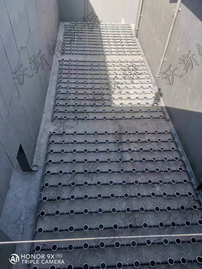 曝气器平面布置通常为环状或者枝状,环状布置曝气器效果会好些,空气管路尽量形成环路,以保证安全供气,曝气管路避开搅拌机、推流器和泵等设备。曝气器管道干管和支管风速一般取10-15m/s,小支管风速取4-5m/s,曝气管路要均匀布置在池底,曝气器距池壁不小于200mm。每个独立的曝气环路单元进气口出设置手动阀门方便维修更换。