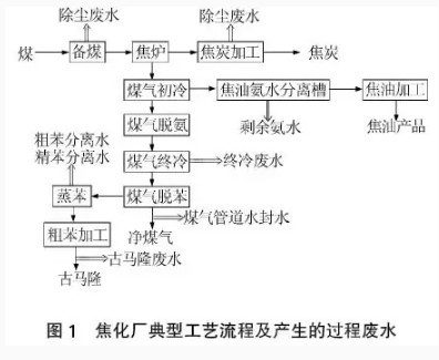焦化厂典型工艺流程及过程废水的产生如图