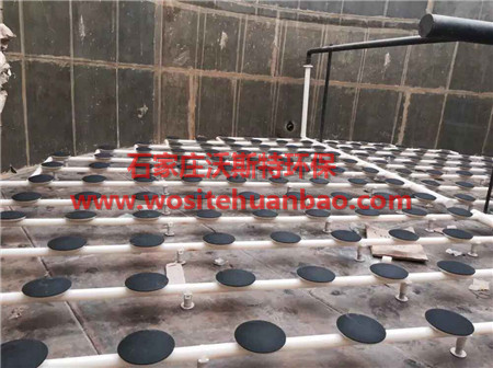 曝气头的安装质量,不仅要求牢固可靠, 而且处于同一水平面上,高低误差不大于+1m,检查无误后方可通水,首次通水深度为淹没
